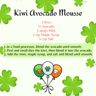 Now what are all the different layers? The bottom is a caraway pistachio shortbread, bringing in a bright, minty, savory, and nutty note to balance out the many others attributes coming next. On top of the crust is a kiwi, mint, and avocado mousse, both acidic and herbaceous and light as air. Next is a dark chocolate ganache enhanced by mint extract and salt to make certain the mint shines through. On top is an 'Irish cream' whiskey meringue, torched for a little more intrigue at first glance. Because the mousse is very soft, this dessert needs to be kept in the fridge (or the freezer to be thawed when it is time to enjoy) to best appreciate how each layer contributes to the final outcome - which to me resembles a petite ice cream sandwich, a surefire hit for the upcoming seasons! Serve it with the Glocca Morra Martini from Broadway By The Glass, a subtle, delightful combination of Irish cream, chocolate, and mint to flush out these flavors even more and make your little treat as classy as it can be.